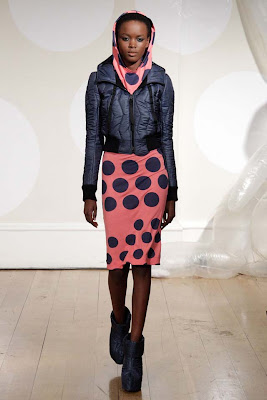 Models present creations during the Christopher Raeburn, London Fashion Week 2012 Autumn/Winter Womenswear collection.